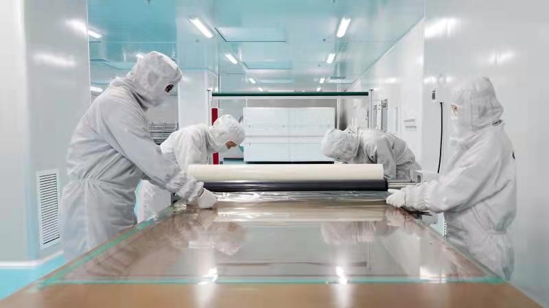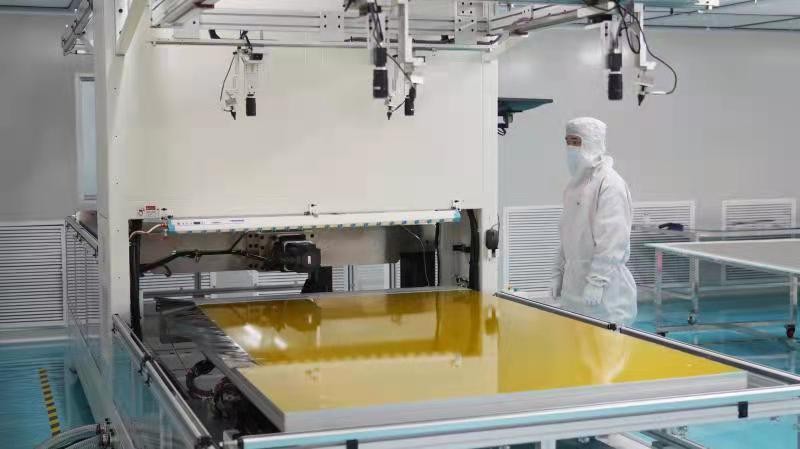 ? ? ? ? 2月9日,高新區(qū)松柏電子生產(chǎn)車間,2名工人合力將一張86寸觸摸屏移下操作平臺。